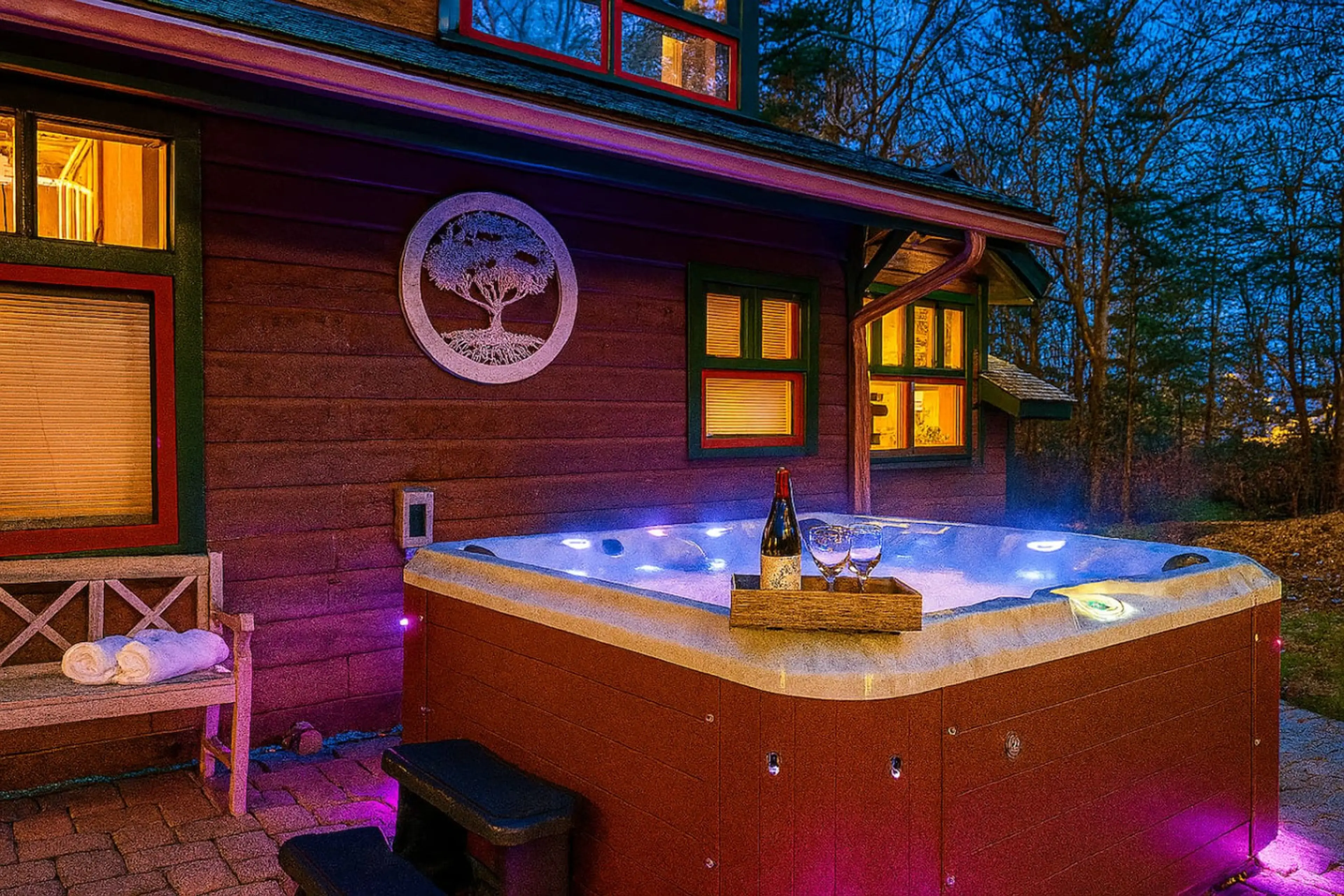 Romantic Creekside Lodge with Private Hot Tub